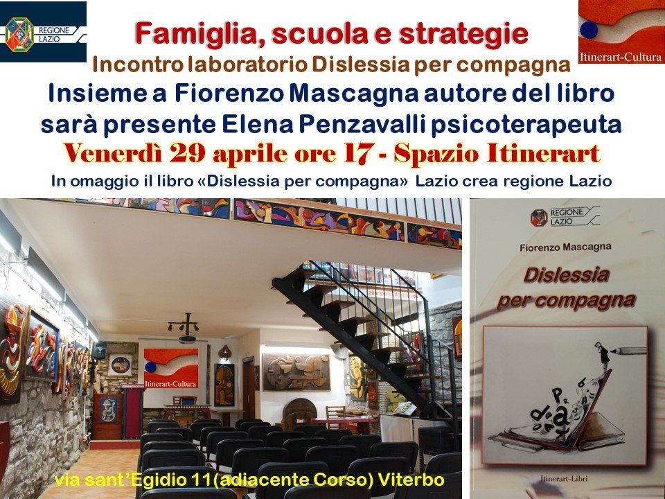 A conclusione delle numerose presentazioni del libro e del progetto "Dislessia per compagna" che si sono svolte presso le scuole e le biblioteche provincia, abbiamo ritenuto opportuno coinvolgere anche la sede Itinerart che, in occasione della presentazione condotta dalla psicoterapeuta Elena Penzavalli, ha avuto come ospite l'assessore alle politiche sociali della regione Lazio Alessandra Troncarelli.